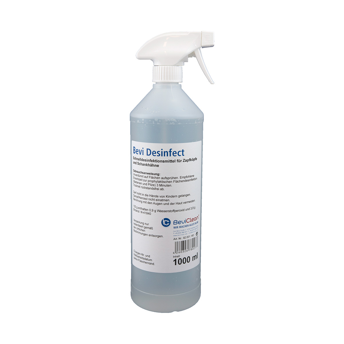 Bevi Desinfect ist ein Schnelldesinfektionsmittel für Zapfköpfe und Schankhähne. Das Reinigungsmiitel ist auf Wasserstoffperoxid-Basis und wirkt zuverlässig schnell gegen Bakterien (inkl. Salmonellen und Listerien), Pilz (inkl. Hefe- u. Schimmelpilze). Es ist gebrauchsfertig, materialverträglich, parfümfrei und trocknet rückstandsfrei ab.