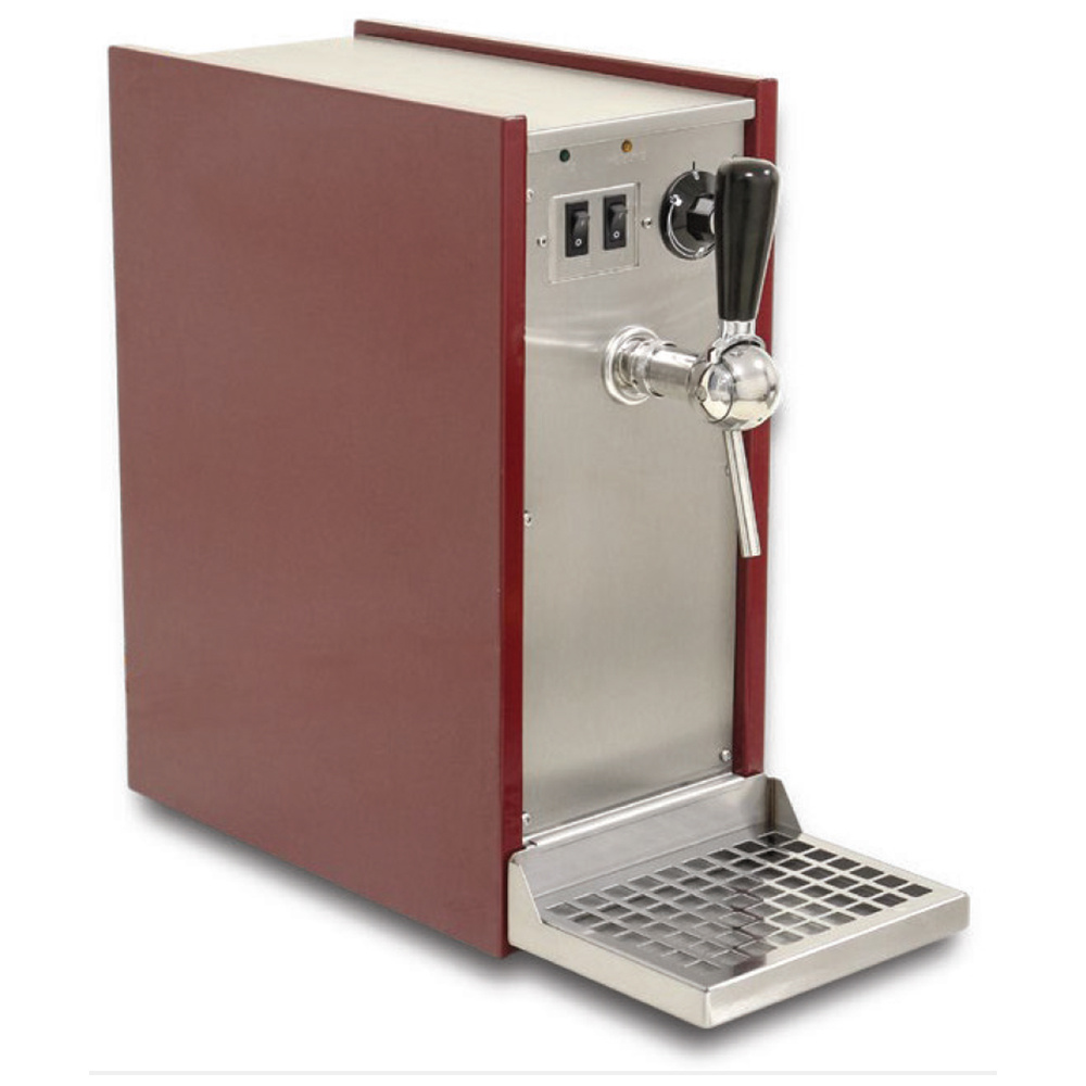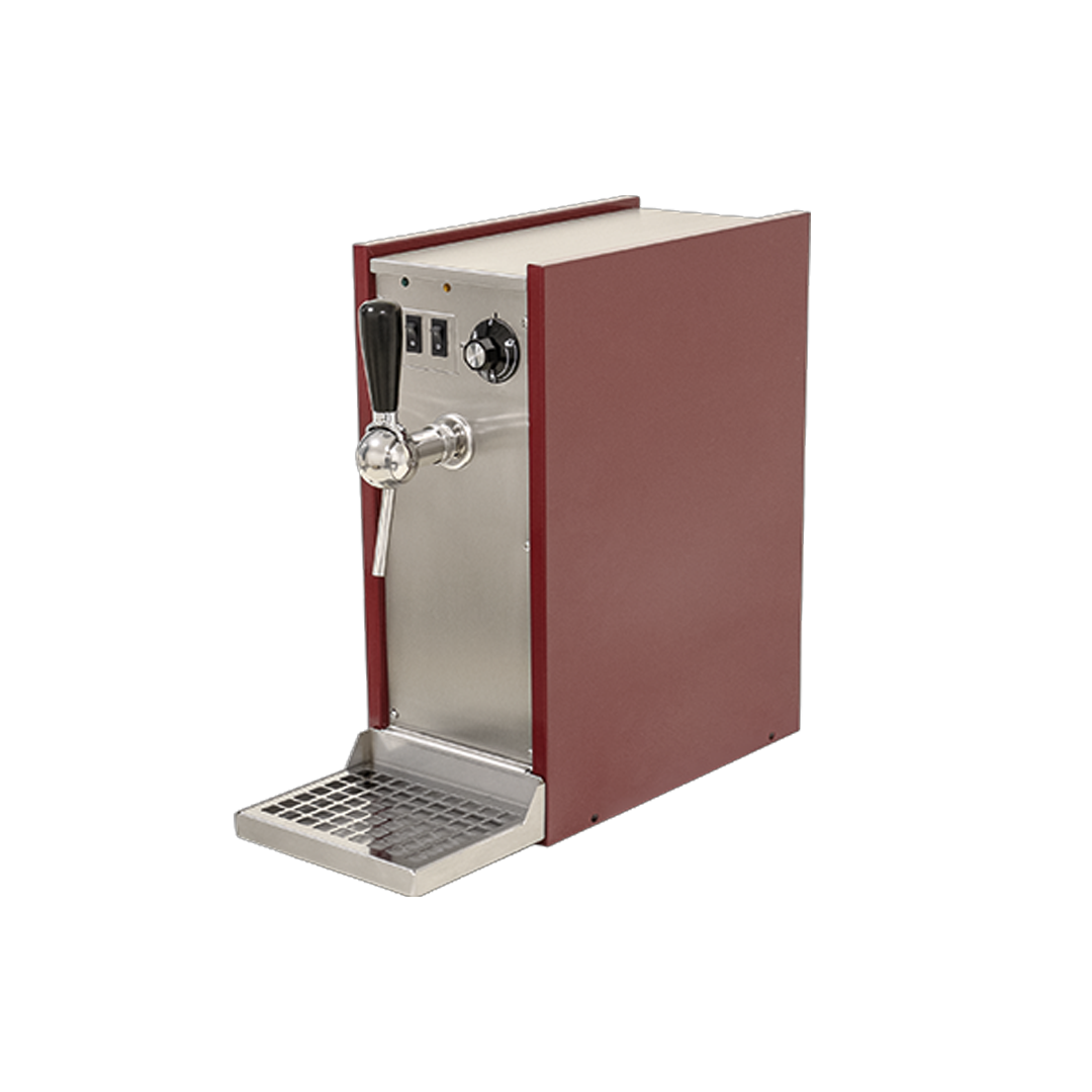 Das Gerät verfügt über eine Zapfleistung von 30 Liter die Stunde und eine integrierte elektrische Pumpe. Außerdem ist der montierte Kugelhahn beheizt.
