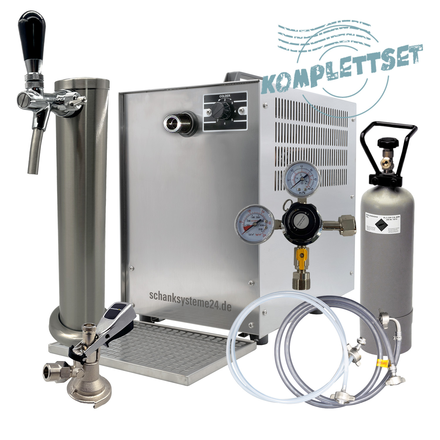 Bei unserem Komplettset Trockenkühler TE-60-1 ist das passende Zubehör bereits im Lieferumfang enthalten, so können Sie nichts vergessen! Wenn die Anlage bei Ihnen ankommt, einfach die mitgelieferten Teile montieren, das Fass und die CO2 Flasche anschließen und loszapfen.